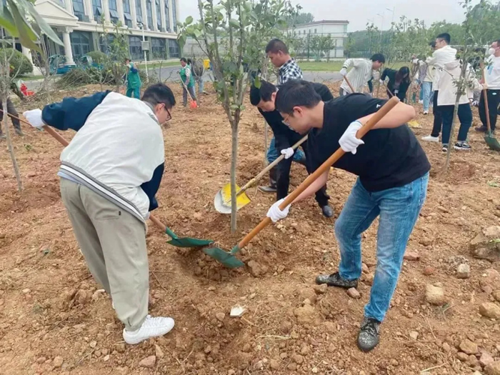 除土球布條、挖坑、扶樹、填土、檢查調(diào)整......紙上得來終覺淺,覺知此事要躬行??油诘没蛱罨蛱珳\,埋樹根時(shí)或太松或太實(shí),凡此種種細(xì)節(jié),都會影響樹苗成活率,大家也虛心聽從綠化師傅們的意見,耐心調(diào)整,并很快得心應(yīng)手起來。