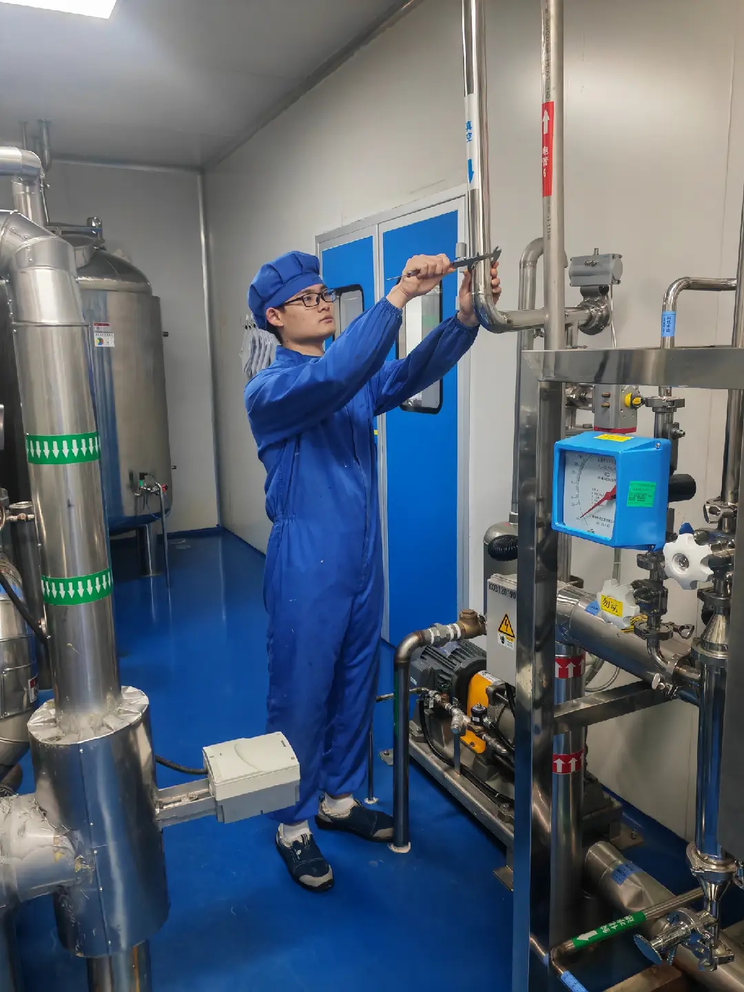 2022年6月,懷揣著“通過(guò)設(shè)備技術(shù)創(chuàng)新改進(jìn),提高車間產(chǎn)品的質(zhì)量和生產(chǎn)速度”的夢(mèng)想,他申請(qǐng)從配方轉(zhuǎn)崗至設(shè)備工程師。轉(zhuǎn)崗之初,接到報(bào)修后他不敢一個(gè)人去現(xiàn)場(chǎng),必須拉上老師傅陪同。因此崗位上傳出了“柯定華他不會(huì)修,和我們一樣站在旁邊看,不知道他非要去機(jī)修干嘛”的聲音??露ㄈA深知“踏石留印、抓鐵有痕”的道理,從力所能及的事情開(kāi)始干,換輪子、換門(mén)鎖、換開(kāi)關(guān)、打膠、拆一根線接一根線的換傳感器、照葫蘆畫(huà)瓢式的換備件……夢(mèng)想從學(xué)習(xí)開(kāi)始,事業(yè)靠本領(lǐng)成就。漸漸地,柯定華讓車間看見(jiàn),他已經(jīng)從“雜工”成長(zhǎng)為了配方設(shè)備維修的“行家”。流化床原先棄用的真空吸料管道內(nèi)壁無(wú)法徹底清潔,柯定華通過(guò)技改將對(duì)穿螺絲法蘭改為快裝盲板,使得清場(chǎng)時(shí)可將盲板取下深度清潔到管道內(nèi)壁,避免藥粉藏于死角產(chǎn)生交叉污染的風(fēng)險(xiǎn);原先流化床充氣密封圈頻繁漏氣,他通過(guò)技改更換螺紋式氣管接頭為快插式氣管接頭,并培訓(xùn)崗位人員,使得密封圈破損頻率大大降低,減少了生產(chǎn)過(guò)程中由于密封圈破損造成物料暴露于空氣中受污染的風(fēng)險(xiǎn)等等。根深才能葉茂,本固方可枝榮。GLATT制粒線如今煥然一新,精神抖擻,發(fā)生故障頻率遠(yuǎn)低于從前。