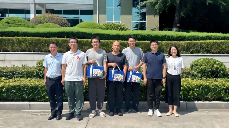 南京海陵黨支部書記李靜、黨支部副書記車越、財務(wù)部部長郭垂來代表工廠慰問奮戰(zhàn)在一線的員工,為他們送上防暑禮包。