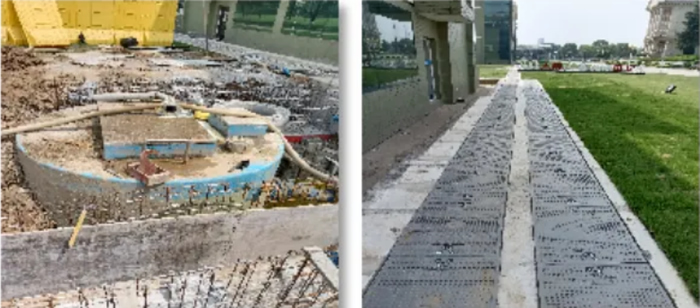 2022年6月,薛永峰開(kāi)始將自己設(shè)想的畫(huà)面細(xì)化落實(shí),項(xiàng)目正式立項(xiàng)。前期的調(diào)研設(shè)計(jì)工作是項(xiàng)目順利落地的保障。海陵草坪之下,是二十年來(lái)“勤懇”運(yùn)行的暗管、電纜和壓力管道,盡管有圖紙可供參考,但畢竟年份久遠(yuǎn),實(shí)際的情況只有現(xiàn)場(chǎng)勘察才能確認(rèn)。而施工方案的設(shè)計(jì)既要滿足海陵同步使用同步改造的需求,又需要便于后期對(duì)草品美觀度的恢復(fù),使之符合廠區(qū)整體的環(huán)境風(fēng)格。薛永峰關(guān)注著設(shè)計(jì)圖的每一個(gè)細(xì)節(jié),并對(duì)設(shè)計(jì)單位提出改進(jìn)意見(jiàn)。項(xiàng)目進(jìn)度穩(wěn)步推進(jìn)。