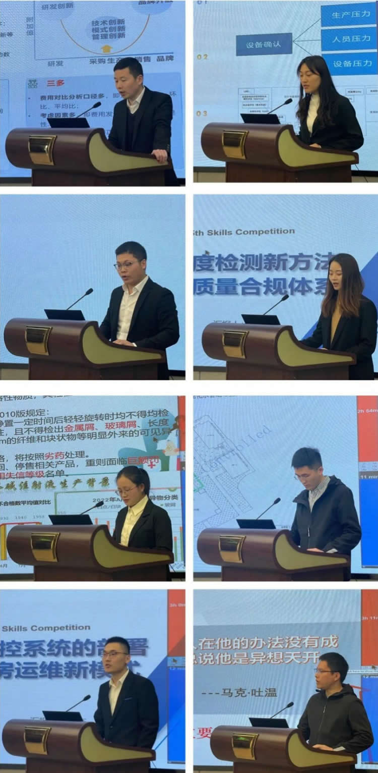 3月20日13:00,比賽正式開始。制造部生產(chǎn)運(yùn)營(yíng)辦公室供應(yīng)鏈小組帶來《集采品種成本精準(zhǔn)測(cè)算》的匯報(bào),分享了如何助力集采入圍;技術(shù)部提升隊(duì)帶來《健全設(shè)備確認(rèn)評(píng)估體系,全面提升設(shè)備產(chǎn)能》的匯報(bào),分享了如何進(jìn)行設(shè)備確認(rèn)優(yōu)化;固體制劑1號(hào)車間務(wù)實(shí)小組帶來《建立標(biāo)準(zhǔn)化記錄及流程管控,降低批記錄填寫錯(cuò)誤率》的匯報(bào),分享了產(chǎn)品A記錄填寫優(yōu)化過程;粒度方法開發(fā)小隊(duì)帶來《建立粒度檢測(cè)新方法,完善質(zhì)量合規(guī)體系》的匯報(bào),分享了如何堅(jiān)守產(chǎn)品質(zhì)量;小容量注射劑1號(hào)車間恒星小組帶來《降低產(chǎn)品B可見異物》的匯報(bào),分享了對(duì)“任何困難都不能把我們打倒,唯有質(zhì)量”質(zhì)量精神的堅(jiān)守過程;設(shè)備工程部洞悉小組帶來《降低純化水系統(tǒng)微生物》的匯報(bào),分享了如何著眼看不見的微生物保證產(chǎn)品高質(zhì);信息部項(xiàng)目組帶來《基于環(huán)控系統(tǒng)的部署建立機(jī)房運(yùn)維新模式》的匯報(bào),分享了如何讓各類設(shè)備的正常平穩(wěn)運(yùn)行;固體制劑1號(hào)車間帶來《技改—突破固體設(shè)備性能》的匯報(bào),分享了如何讓設(shè)備“保質(zhì)高效”地運(yùn)行。